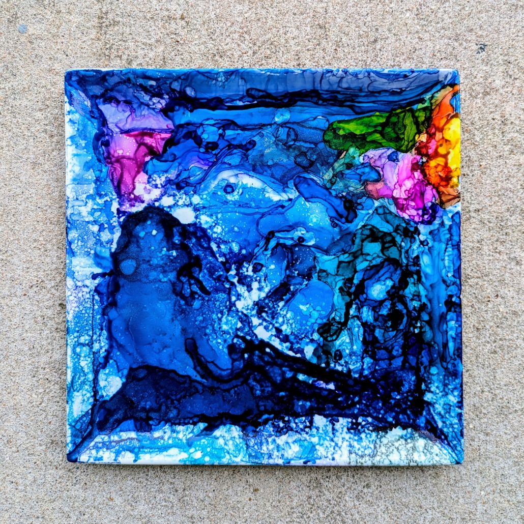 In our professional opinion, alcohol inks are like the Hulk version of watercolors. The colors are extreme!, and this medium works with non-porous surfaces, meaning that you can do beautiful art on metal, glass, and more.