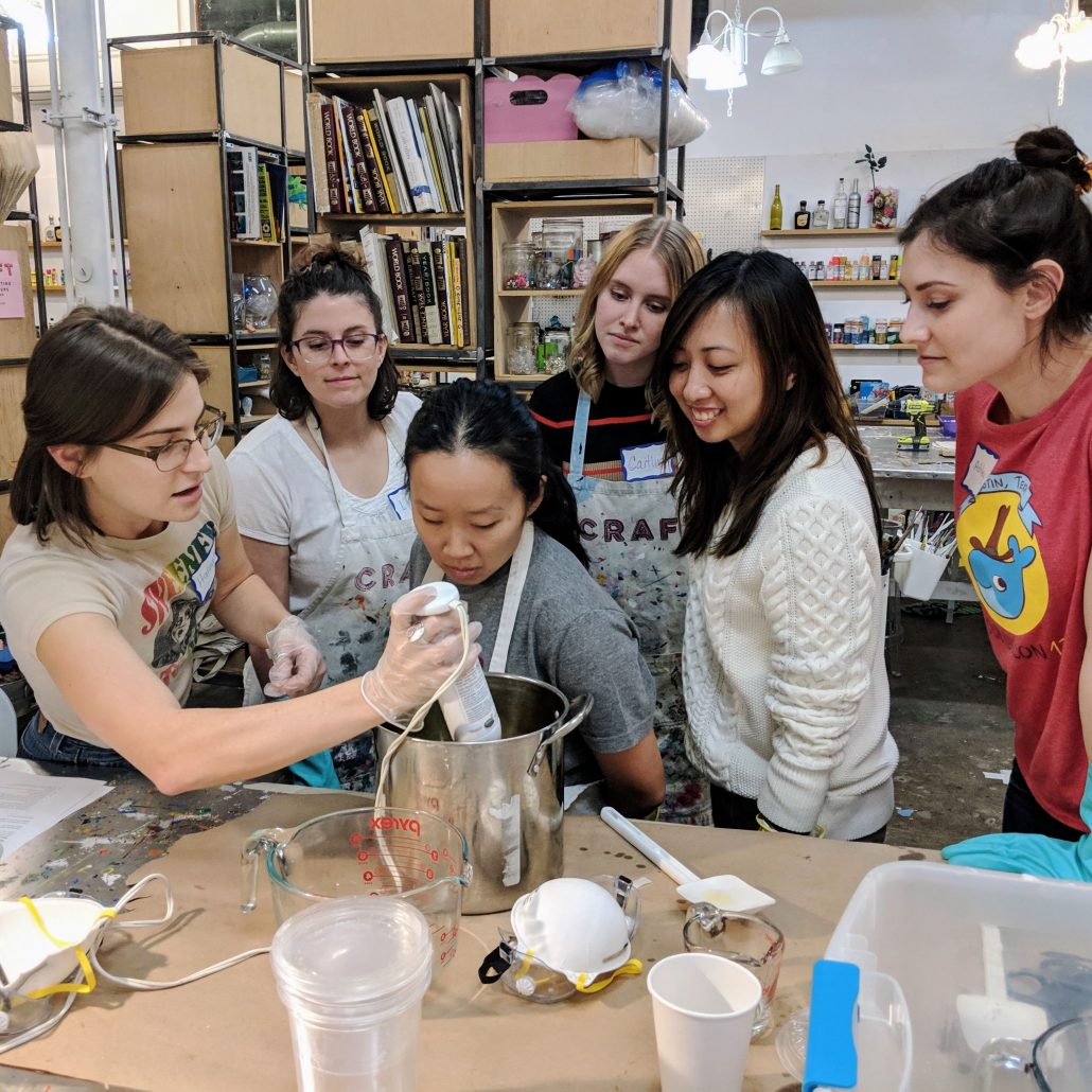 In this introduction to soapmaking, Hannah Moore of Moore Soaps will explain the basic chemistry and materials used to make soap from scratch, as well as safety precautions. Under her guidance, students will create cold process soap batter and customize it with scents and botanical elements. You will also have the opportunity to decorate your own soap packaging, using CRAFT’s supplies. Soap needs to cure, so you will be able to cut up your pieces after 24 hours and use the soap after six weeks. Bonus: we’ll give you soap to tide you over until yours is ready to use!