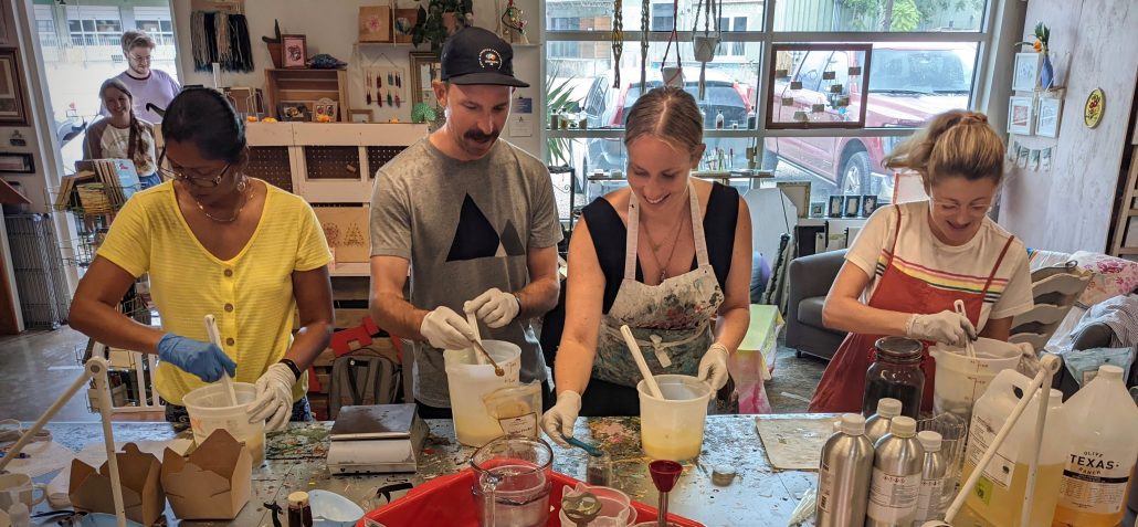 - learn about soapmaking safety and other logistics like where to get supplies for more soapmaking in the future,